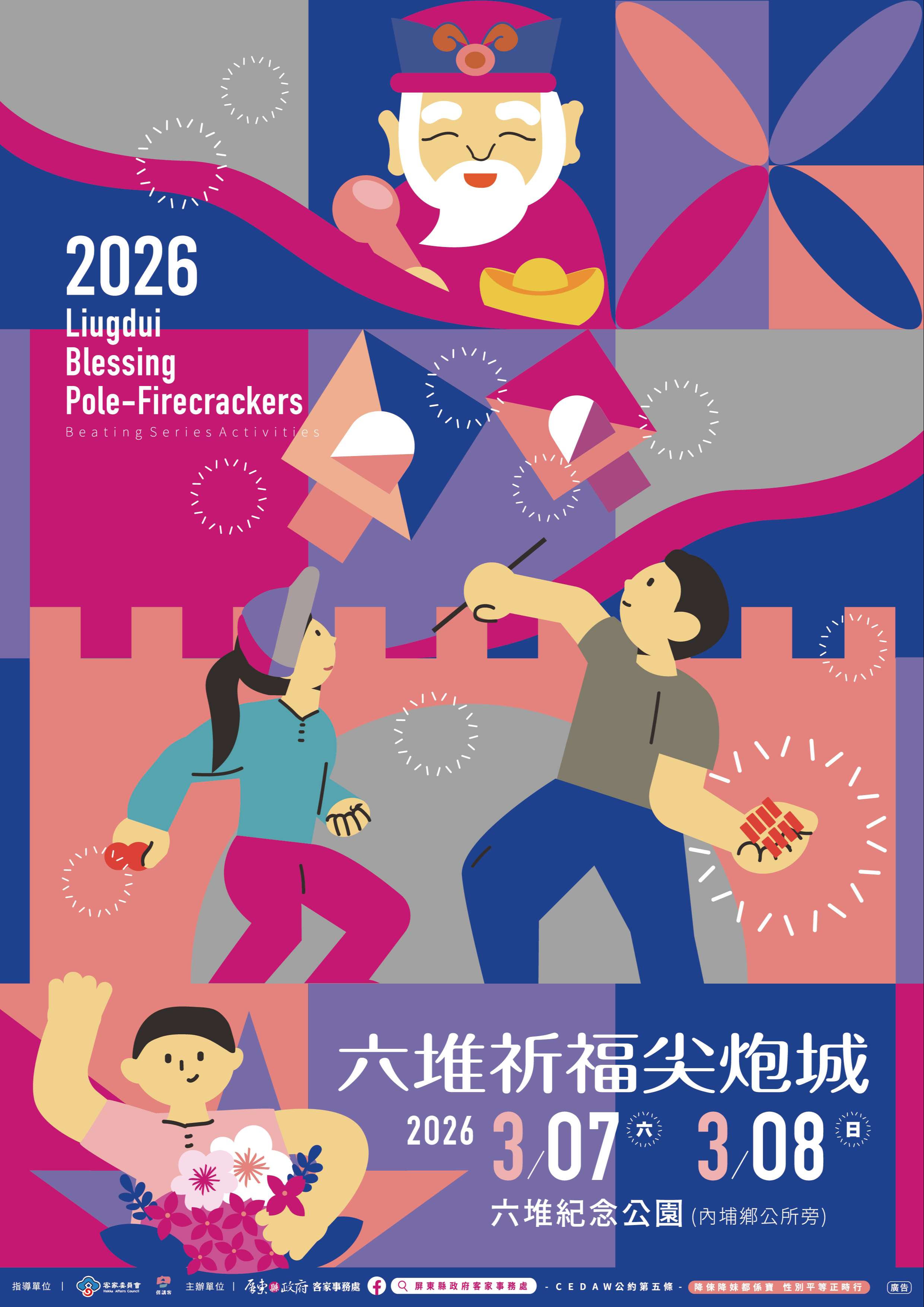 | 二、 | 旨揭活動地點為屏東縣內埔鄉六堆紀念公園,其中「機關組尖炮城大賽(團體組)」訂於115年3月8日下午2時進行,請踴躍組隊參賽,並於115年2月26日前完成報名;報名網址https://www.accupass.com/event/2601200624319350310170。 |