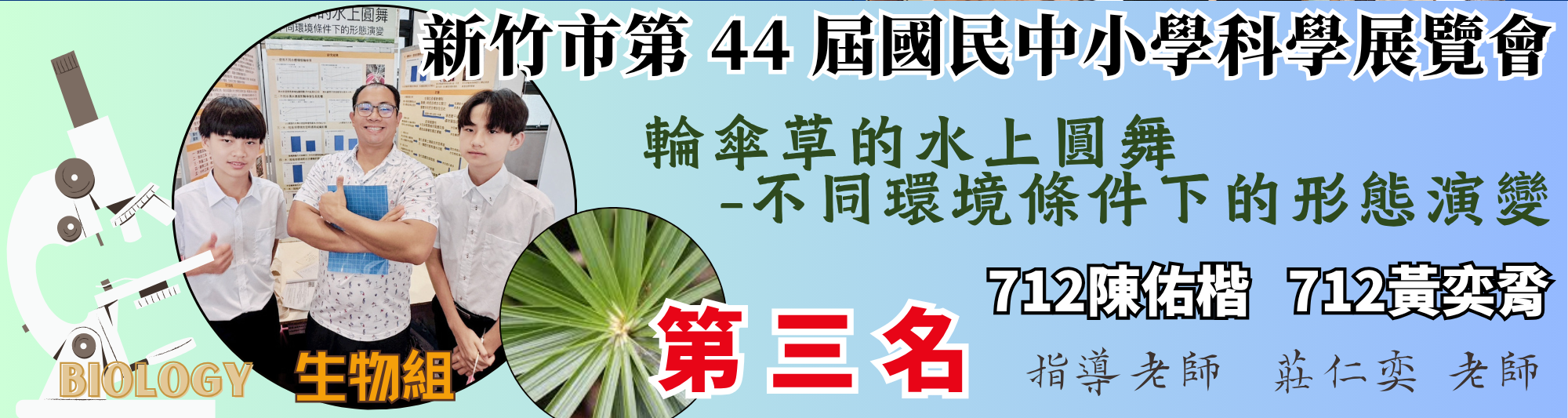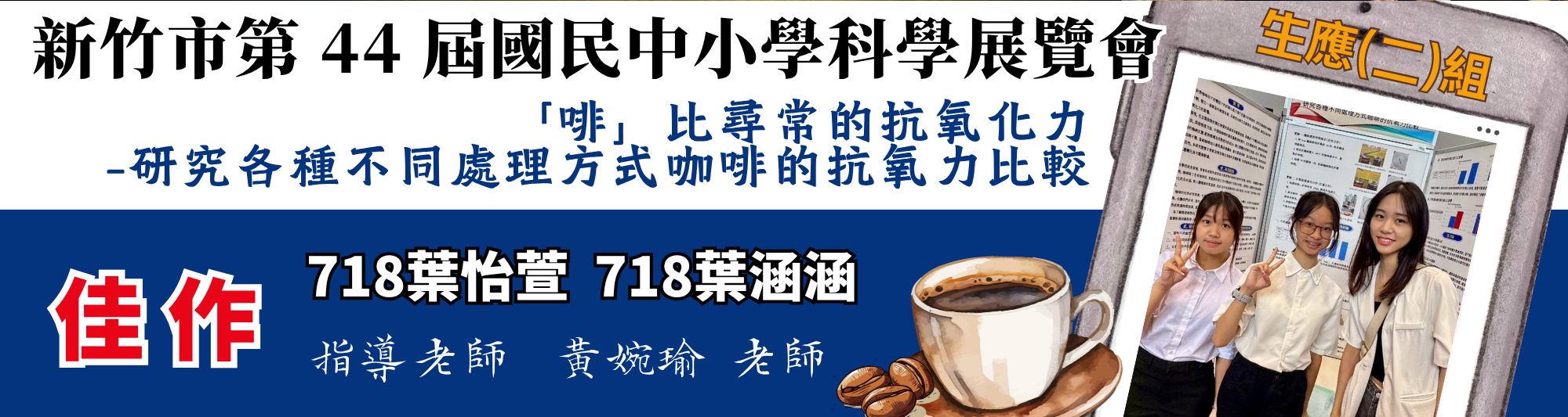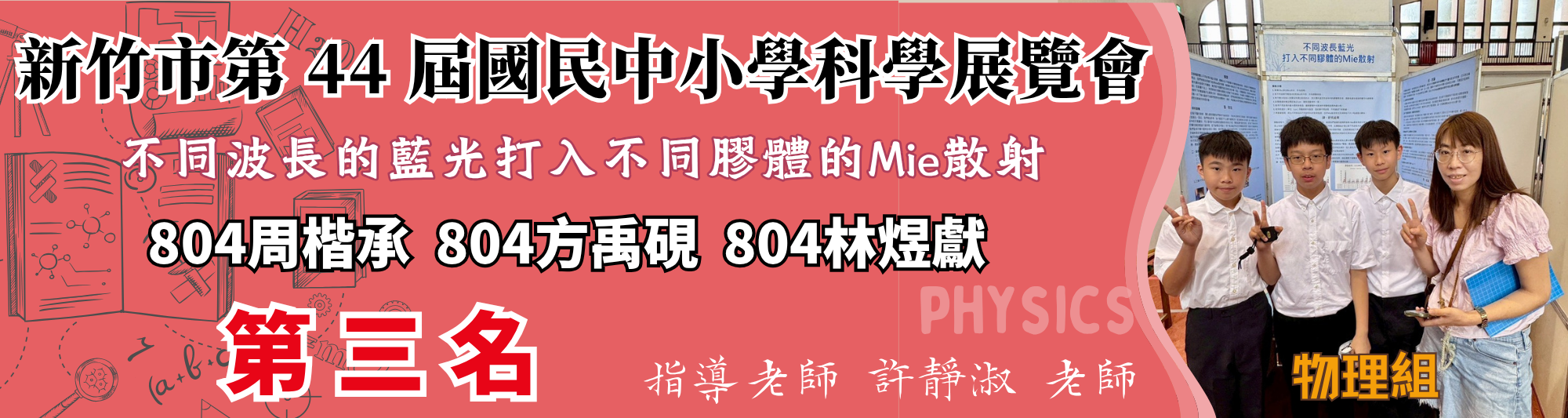 恭喜參加新竹市第44屆科學展覽會榮獲佳績,以下得獎組別,指導老師經過長達半年以上的訓練,獲獎不易。