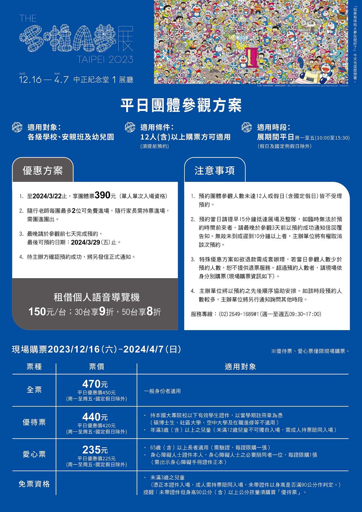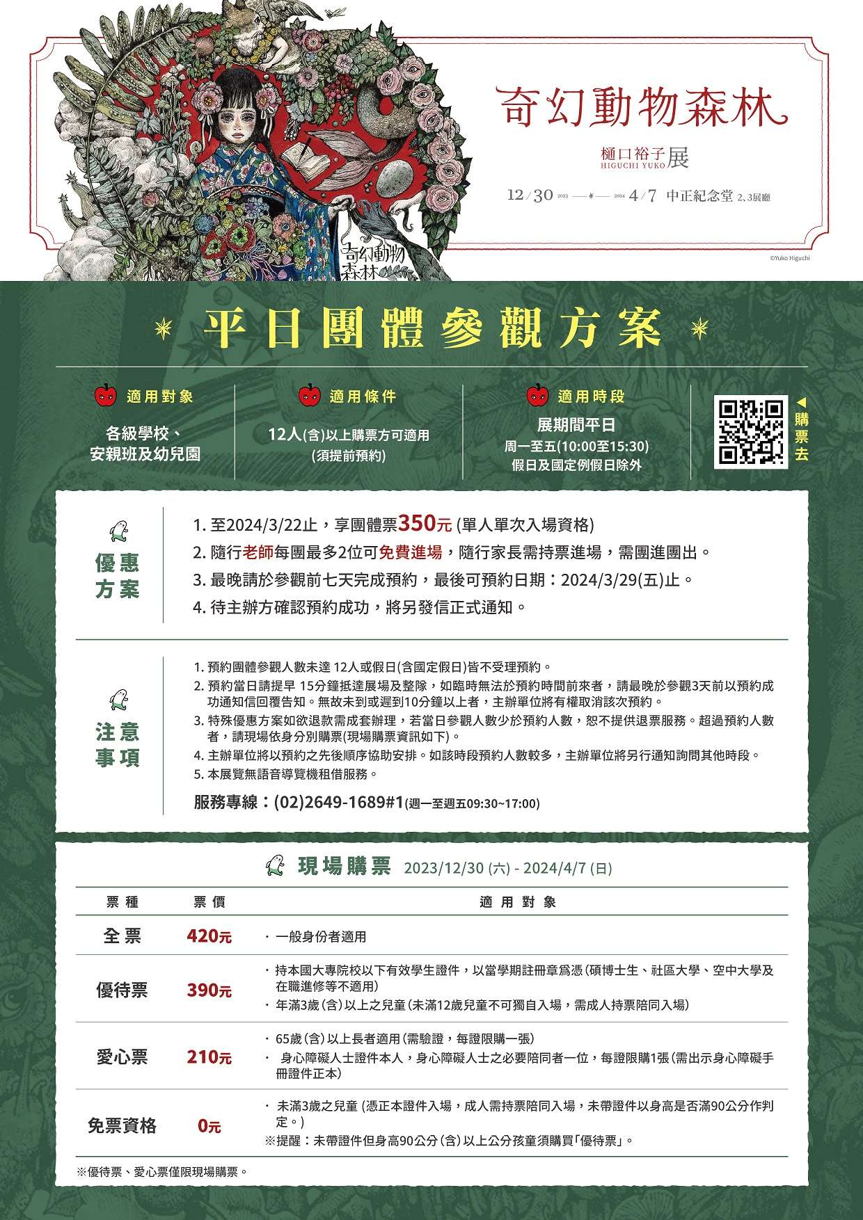 (二) | 適用條件:12人(含)以上購票,可另提供隨行老師最多2位免費進場,隨行家長需持票進場。 |