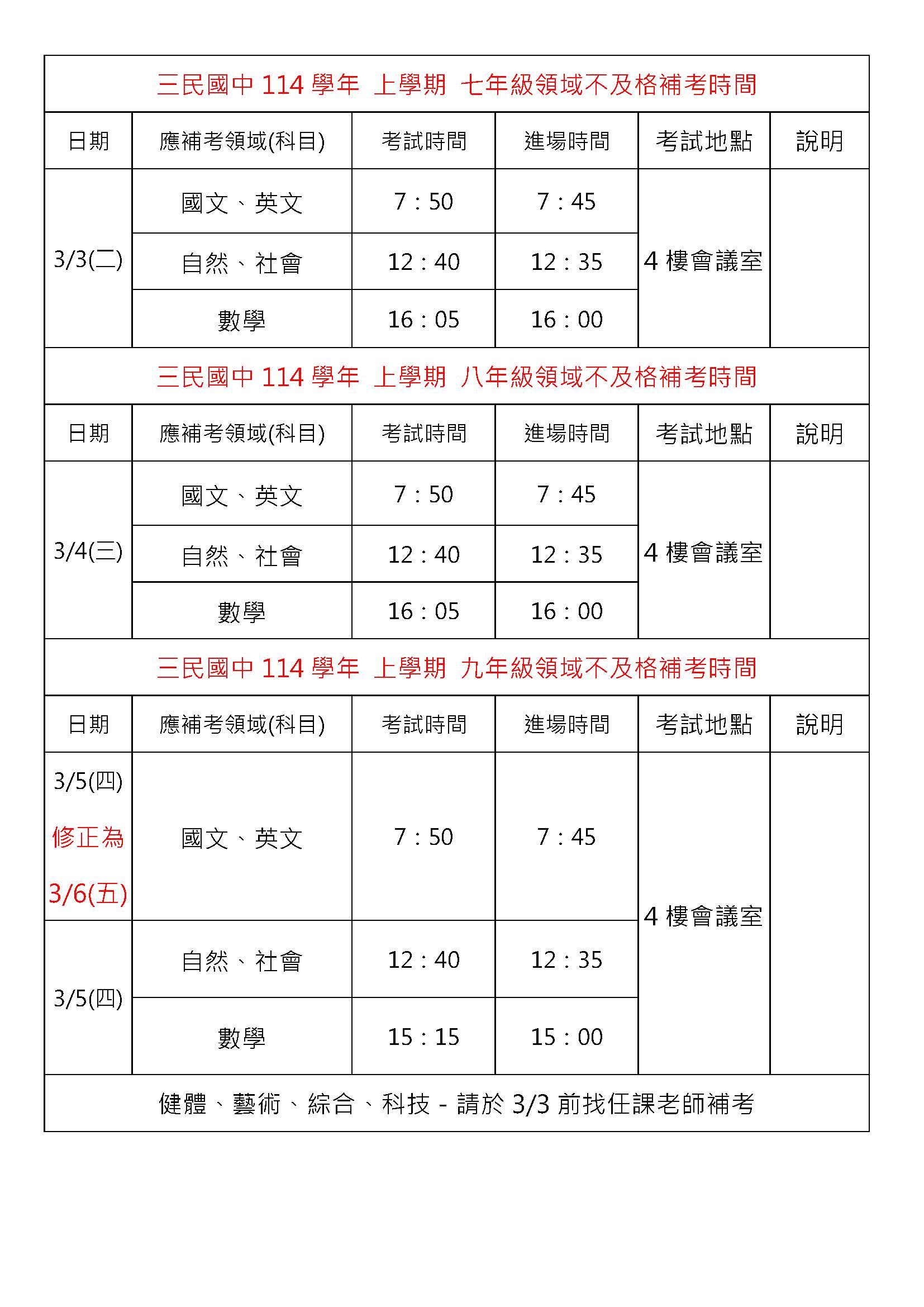 備註:依新竹市國民小學及國民中學學生成績評量補充規定,針對學生學期成績未達丙等之領域學習課程辦理補考。補考以一次為限,除有不可抗力因素外,逾期未參加者,視同放棄補考之機會。前項補考範圍,應以該領域學習課程學期教學內容為原則,補考 六十分以上者,以六十分計算;未達六十分者,與原始成績擇優採計。