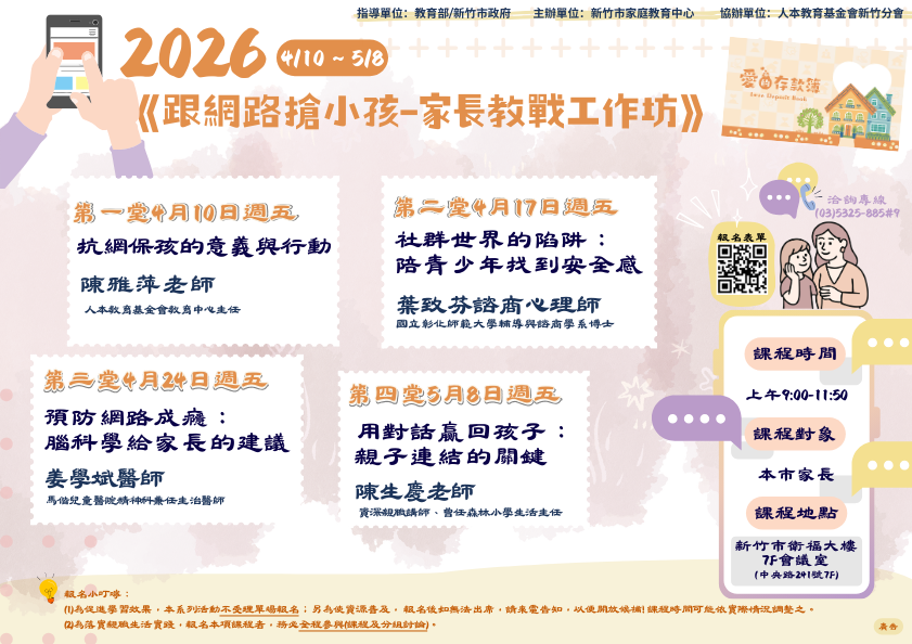 二、活動地點:新竹市社福大樓7樓會議室(中央路241號7樓)
