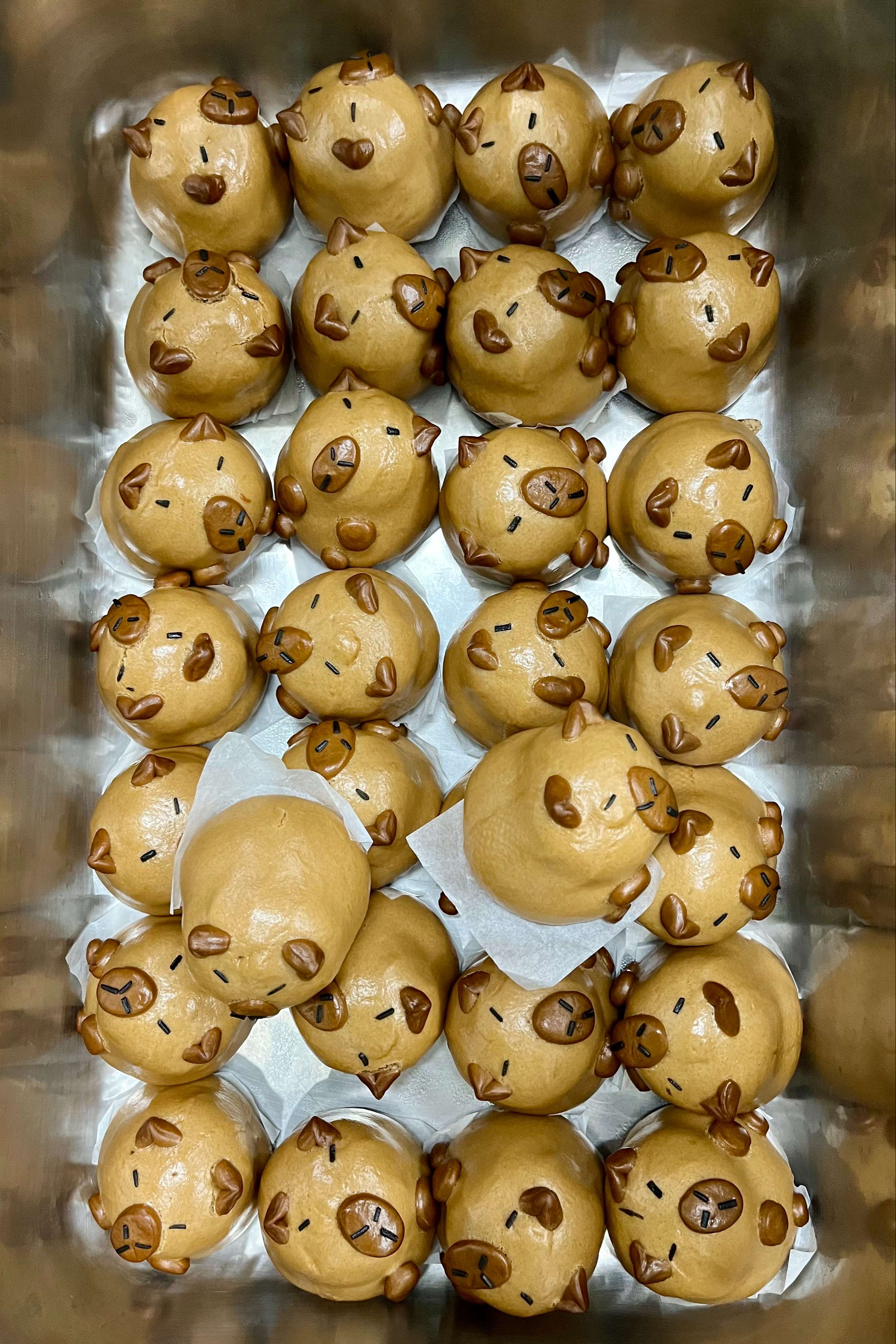 葷食: 義式茄醬螺旋麵/ 炸豬排*1/ 蒜炒有機白松菜/ 水豚君造型包子(芋泥牛奶餡)*1/ 產銷履歷豆漿*1